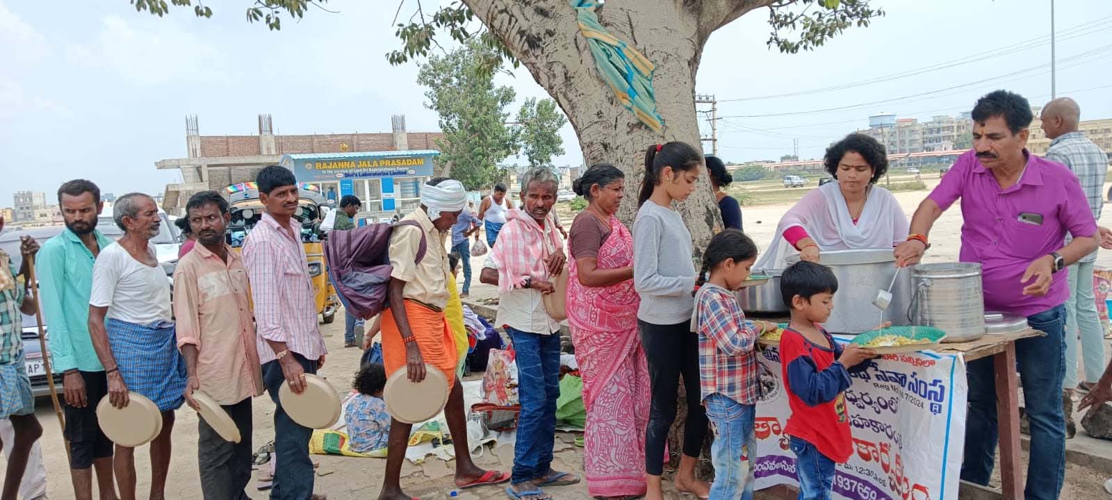 వేములవాడ, నిఘా న్యూస్: దక్షణ కాశీగా పేరుగాంచిన వేములవాడ శ్రీరాజరాజేశ్వర స్వామి ఆలయ ఆవరణలో నిత్యం నిర్వహిస్తున్న అన్నదాన కార్యక్రమంలో భాగంగా 89వ రోజు సందర్భంగా శాశ్వత దాతలు నాగుబోతు రవీందర్ జ్యోతి(భాను ఏజెన్సీస్)వారి మరియు సంవత్సర దాతలు తోట లక్ష్మి, పబ్బ విశాల పూర్ణిమ పవన్ దంపతుల, కొండ కనుకయ్య కళావతి దపతుల, మల్కపురం ప్రశాంత్ మమత దంపతుల, గంగపురం భారత్వాజ్(సూరజ్ టైలర్), కూరగాయల శాన్ష్రాయ్ మౌర్య, గార్ల సహకారాలతో ఈ రోజు వేములవాడ శ్రీ రాజరాజేశ్వర స్వామి ఆలయ పార్కింగ్ స్థలంలో 70మంది అన్నర్థులకు పేదలకు భక్తులకు అన్నదాన కార్యక్రమం నిర్వహించడం జరిగిందని ట్రస్ట్ నిర్వాహకులు తోట లహరి రాజేష్ అన్నారు.