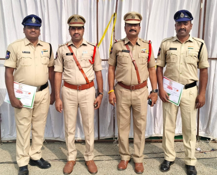 వేములవాడ, నిఘా న్యూస్: గణతంత్ర దినోత్సవం సందర్భంగా వేములవాడ రూరల్ పోలీస్ల ఉత్తమ సేవలకు గుర్తింపుగా ప్రశంసా పత్రాలు అందజేశారు. రాజన్న సిరిసిల్ల జిల్లా సూపరింటెండెంట్ ఆఫ్ పోలీస్ మహేష్ బి. గితే మరియు జిల్లా కలెక్టర్ గరిమా అగర్వా చేతుల మీదుగా ఈ ప్రశంసా పత్రాలు అందించారు. వేములవాడ రూరల్ సర్కిల్ ఇన్స్పెక్టర్ శ్రీనివాస్, వేములవాడ రూరల్ ఎస్ఐ వెంకట్రాజం, కానిస్టేబుల్స్ రాజశేఖర్, తిరుపతి, వెంకటేష్ లు తమ ఉత్తమ పనితీరుతో ప్రశంసా పత్రాలు అందుకోవడం విశేషం. వారి సేవలు ఇతరులకు ఆదర్శంగా నిలుస్తాయని అధికారులు అభినందించారు.