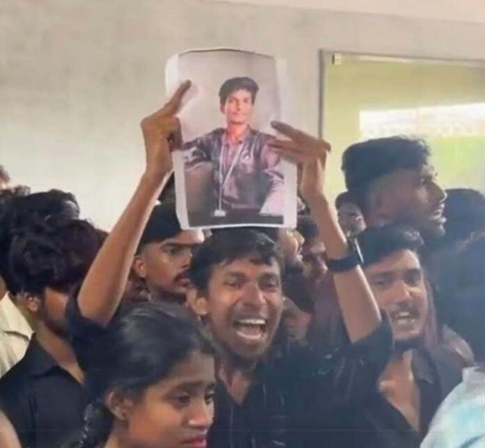 విద్యార్థి మరణంపై కాలేజీ యాజమాన్యం స్పందించా లని డిమాండ్ చేశారు. యూనివర్సిటీ ఫర్నీచర్, అద్దాలు ధ్వంసం చేశారు. త‌ర‌గ‌తులు బ‌హిష్క‌రించిన విద్యార్థులు విద్యార్థులు త‌ర‌గ‌తుల‌ను బ‌హిష్క‌రించి మైదానంలో బైఠాయిం చారు.విద్యార్థి తల్లిదండ్రులకు న్యాయం చేయాలని డిమాండ్ చేశారు. కాలేజీ వద్దకు చేరుకున్న పేట్ బాషీరాబాద్ పోలీసులు విద్యార్థి సంఘ నేతలను మందలించే ప్రయత్నం చేశారు. ఘటనపై పోలీసులు వివ‌రాలు సేక‌రిస్తున్నారు.