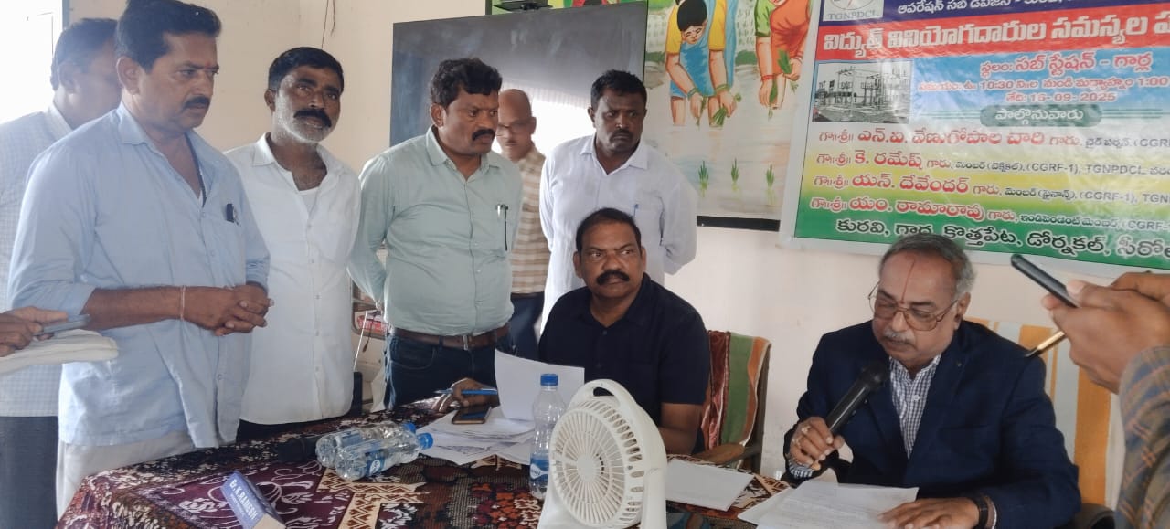 గార్ల సెప్టెంబర్ 16 (నిఘా న్యూస్): విద్యుత్ వినియోగదారుల సమస్యలు తెలుసుకొని సత్వరం పరిష్కరించేందుకే గ్రీవెన్స్లు నిర్వహిస్తున్నామని (సీజీఆర్ఎఫ్) వరంగల్ చైర్మన్ ఎస్ .వి వేణుగోపాల చారి అన్నారు. గార్ల మండల కేంద్రంలోని స్థానిక రైతు వేదికలో మంగళవారం గార్ల డోర్నకల్ కురివి కొత్తపేట సీరోల్ మండలాల విద్యుత్ వినియోగదారుల ఫిర్యాదుల పరిష్కార వేదిక నిర్వహించగా ఆయన ముఖ్య అతిథిగా పాల్గొన్నారు తొలుత వందమంది వినియోగదారుల నుంచి ఫిర్యాదులు అందగా వాటిని స్వీకరించారు ఎక్కడ సమస్య వచ్చినా, విద్యుత్ సరఫరా నిలిచిపోంతోందని అన్నింటికి ప్రత్యేక లైన్లు ఏర్పాటు చేయాలని ప్రజలు వారి దృష్టికి తీసుకెళ్లారు. పలు సమస్యలను అప్పటికప్పుడే విచారించి పరిష్కరించారు వినియోగదాల నుండి వచ్చిన సమస్యలను రెండు రోజుల్లో పరిష్కరించాలని విద్యుత్ శాఖ ఎస్ఈ డిఈలను ఆదేశించారు అధికారులు విధులను నిర్లక్ష్యం చేస్తే శాఖ పరమైన చర్యలు తీసుకుంటామని హెచ్చరించారు అనంతరం ఈ సందర్భంగా ఆయన మాట్లాడుతూ ప్రజల నుంచి వచ్చిన ఫిర్యాదుల ఆధారంగా సమస్యలను గుర్తించి పరిష్కరించేందుకు కృషి చేస్తామన్నారు నాణ్యమైన విద్యుత్ అందించేందుకు రాజీపడేది లేదన్నారు. విద్యుత్ సరఫరాలో అంతరాయాలు, హెచ్చుతగ్గులు, మీటరు ఆగిపోవడం, కాలిపోవడం, బిల్లుల సమస్యలు, కొత్త సర్వీసులు, అదనపులోడు ఇవ్వడంలో నిర్లక్ష్యం, జాప్యం, డిస్ట్రిబ్యూషన్ ట్రాన్స్ఫార్మర్ సమస్యలు, ఓవర్లోడ్, కాలిపోవడం, తరలించడం, ఎల్టీ కేటగిరి, ఫేజ్ మార్చడం తదితర సమస్యలపై ఫిర్యాదు చేయవచ్చని వివరించారు.రైతులు ట్రాన్స్ఫార్మర్లు కాలిపోతే సమాచారం ఇవ్వాలని విద్యుత్ అధికారులు 48 గంటల్లో కొత్త ట్రాన్స్ఫార్మర్లు అమర్చుతారని రెండు రోజుల్లో ట్రాన్స్ఫార్మర్లు ఏర్పాటు చేయని పక్షంలో ఉన్నతాధికారులకు గాని టోల్ ఫ్రీ 1912 నెంబర్ కు కాల్ చేయాలని సూచించారు. వినియోగదారులు సీజీఆర్ఎఫ్ సేవలను సద్వినియోగం చేసుకోవాలని కోరారు. ఈ కార్యక్రమంలో సిజిఆర్ఎఫ్ సభ్యులు కె రమేష్ ఎన్ దేవేందర్ అడిషనల్ డీఈ ఎం రామారావు విద్యుత్ శాఖ ఎస్. ఈ విజయేందర్ రెడ్డి డిఈ విజయ్ ఎఈ మహేందర్ బాబు సిబ్బంది తదితరులు పాల్గొన్నారు.